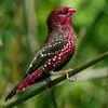 红梅花雀小型鸟类,体长9-10厘米。雄鸟通体朱红色,背、肩、胸等满布白色小斑点,两翅和尾黑褐色均具白色端斑,嘴红色,脚蜡黄色。雌鸟上体淡褐色或赭褐色,翅上中覆羽、大覆羽和内侧飞羽末端具白色斑点,…全部>>