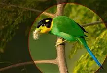 绿喉蜂虎是佛法僧目、蜂虎科的小型鸟类,共有9个亚种。身长22-25厘米,翼展29-30厘米,体重15-20克。喉绿色,额部、头顶至上背为锈红色,其余上体均为亮绿色。中央尾羽延长且端段狭细,…全部>>