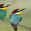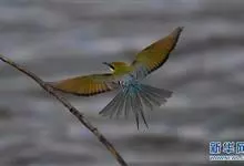 蓝颊蜂虎:是蜂虎科、蜂虎属的鸟类,共有2个亚种。体长27-33厘米,翼展46-49厘米,体重38-50克。嘴形细长而下弯,先端尖,…全部>>