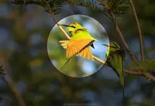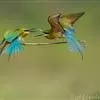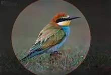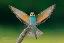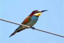 栗喉蜂虎是蜂虎科蜂虎属的鸟类。有热带鸟类羽毛艳丽的特征:喉部是栗红色的,黑色的过眼纹,翅膀和背部是绿色的,尾翼是蓝色的,飞行时翅膀下面的羽毛是橙黄色的,在阳光的照射下,它们全身闪烁着金属般的艳丽光泽,…全部>>
