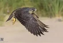 游隼yóu sǔn:是隼科、隼属的中型猛禽,共有18个亚种。体长41-50厘米。翅长而尖,眼周黄色,颊有一粗著的垂直向下的黑色髭纹,头至后颈灰黑色,其余上体蓝灰色,尾具数条黑色横带。…全部>>