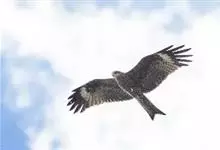黑鸢:是鹰科、鸢属的一种中型猛禽,共有5个亚种。体长54-69厘米。上体暗褐色,下体棕褐色,均具黑褐色羽干纹,尾较长,呈叉状,具宽度相等的黑色和褐色相间排列的横斑;飞翔时翼下左右各有一块大的白斑。…全部>>