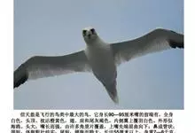 黑背信天翁:是一种中等体型的信天翁,81厘米长,体重2210-2800克,是一种有极长翼羽的大鸟,翅狭长,翼展195-215厘米。雄性略大。鼻孔侧位,不愈合。特征为自颏至臀部为全白色,但翼上及背深色…全部>>