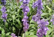 林荫鼠尾草是唇形科、鼠尾草属多年生草本植物。株高50~90厘米;叶对生,长椭圆状或近披针形,叶面皱,先端尖,具柄;轮伞花序再组成穗状花序,长达30~50厘米,花冠二唇形,略等长,下唇反折,…全部>>