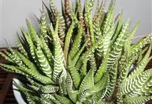条纹十二卷 Haw.)是芦荟科十二卷属植物,为多年生肉质草本植物。植株高度10-15厘米,其呈莲座状生长;叶片紧密轮生在茎轴上,柔软多汁,呈长三角状披针形,极肥厚;叶面光滑、扁平,色深绿;叶背突起,…全部>>
