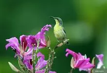 纹背捕蛛鸟:为太阳鸟科捕蛛鸟属的鸟类。是太阳鸟科中体型较大的一种,体重25-45克,体长160-210毫米。嘴粗长而尖且向下弯曲。上体橄榄黄色具黑色中央斑纹。下体淡黄白色满布黑色纵纹,尾具黑色次端斑。…全部>>