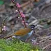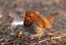 日本歌鸲:体型小似麻雀,但羽毛颜色较为美丽。嘴细长,嘴须不发达;翅短圆,上体草黄褐;雄鸟喉部橙棕色,十分明显,雌鸟却转为淡橙黄色。第一枚初级飞羽短狭;尾长约为跗蹠长度的二倍;跗蹠黑褐色,形粗长而健。…全部>>