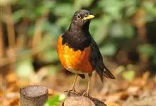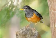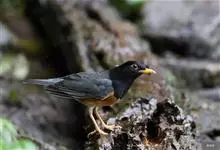 黑胸鸫属中型鸟类,体长20-30厘米。雄鸟整个头、颈、胸黑色,其余上体暗灰色,下体橙棕色,极为醒目。嘴、脚蜡黄色。雌鸟上体橄榄褐色,颏、喉白色,上胸橄榄褐色具黑色斑点,其余与雄鸟相似。…全部>>