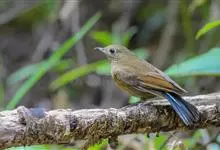 白喉短翅鸫是鹟科、短翅鸫属小型鸟类,体长12-13厘米。上体锈褐或橄榄褐色,眼上方有1-2枚白羽,颏、喉纯白色,胸、腹亦白色,但羽缘浅褐色。虹膜暗褐色,嘴暗褐色,下嘴较淡,脚淡褐色、肉色或暗紫肉色。…全部>>