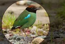 绿胸八色鸫:是雀形目八色鸫科的鸟类,共有12个亚种。体长为16-18厘米,体重65-69克。体型圆胖,尾短,腿长。头黑,上体绿色,两翼深色而具白色斑纹,头顶至后枕深褐,胸及腹部苹果绿,臀亮红。…全部>>