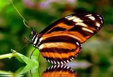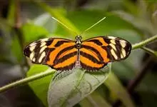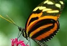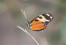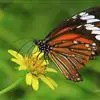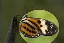 虎斑蝶,Danaus genutia ,是斑蝶属的一种,常见于湿地公园内。雄性虎斑蝶经常伏于吊裙草 上吸食汁液,以制造吸引异性的香气。虎斑蝶翅膀腹面鲜橙色,翅脉和翅边缘黑色,边缘上有两行小白点,…全部>>