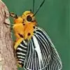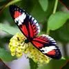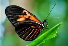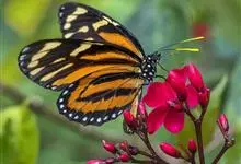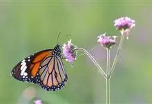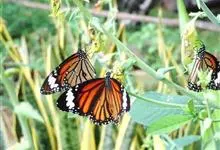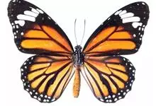黑脉金斑蝶:翅阔8.6-12.4厘米。雄蝶较雌蝶为大。成年蝶颜色鲜艳,翅膀上有显眼的橙色及黑色斑纹,周围是宽阔的黑色边框,布有许多白色斑点。这种引人注目的着色是对捕食者的视觉警告,表示这个物种有毒;…全部>>