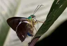 幻紫斑蝶是鳞翅目斑蝶科的一种昆虫。雄蝶翅暗褐色,基部较深,向端部渐浅,蓝色光泽弱,前翅后缘向外凸呈阔弧形,中室端部上和下均有1个白点,近顶端1个不明显,外缘白点列不明显,亚端部有5一6个白点,在CU…全部>>