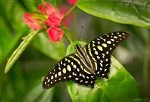 青带凤蝶Graphium sarpedon ,又名青凤蝶,是最普遍的中型凤蝶,飞行速度很快。青带凤蝶的翅膀中央有许多浅蓝色的斑点,很整齐地排列成一条直线。这些斑点由上而下逐渐变大,就像一条青色的带子。全部>>
