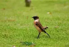 黑喉石鵖,雀形目鹟科石鵖属小型鸣禽,俗名谷尾鸟、黑喉石。其体色为黑褐色。雄鸟头部、背部、两翼及尾黑色,颈侧及翼上具白斑,胸部和腹侧红棕色,腰及尾下覆羽白色。雌鸟体色为褐色,上体具深色纵纹,胸部染棕色,…全部>>