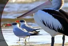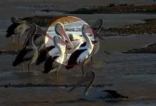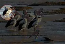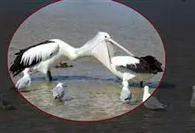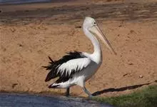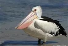 澳大利亚鹈鹕是一种大型涉禽,体重达13千克。生活于沿海及河川、湖泊等处。飞行力强而悠逸,常群飞群栖,极善于游泳,但不会潜水。游泳时张口捕鱼,将捕得的鱼兜入喉囊内。有时结群,排成长线,…全部>>