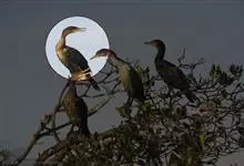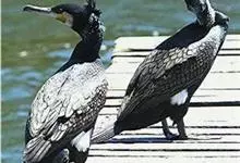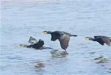 普通鸬鹚是属于鲣鸟目鸬鹚科鸬鹚属鸟类,又名水老鸦、鱼鹰、乌鬼、黑鱼郎等。体长720—900毫米,雌雄同型。通体黑色,有绿褐色金属光泽;喙厚重,喙基和喉囊橙黄色,脸颊及喉白色;夏羽颈及头饰具白色丝状羽,…全部>>
