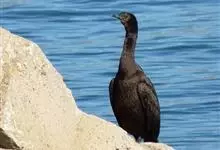 海鸬鹚:俗名乌鹈。典型的海上鸬鹚。体长约70厘米,体羽黑色具光泽。脸红色,与红脸鸬鹚甚似,但繁殖期冠羽较稀疏而松软,脸部红色不及额部但脸颊红色较多,幼鸟及非繁殖期的鸟脸粉灰,体型略小。虹膜蓝色;嘴黄…全部>>