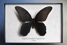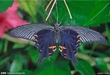 蓝凤蝶,Papilio protenor Cramer,凤蝶科凤蝶属的一种昆虫。翅展95~120mm。翅黑色,有靛蓝色天鹅绒光泽。雄蝶后翅正面前缘有黄白色斑纹,…全部>>