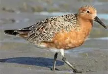 红腹滨鹬,是鹬科、滨鹬属的小型涉禽,体长23-25厘米,嘴较短而直、黑色,脚亦甚短、绿色。体较粗胖。夏季上体灰褐色具黑色中央纹,背具棕栗色和白色斑纹和羽缘,头侧和整个下体栗红色。冬季棕红色消失,…全部>>