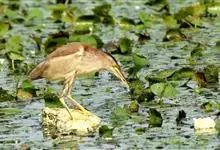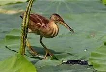 紫背苇鳽是鹭科、苇鳽属动物,为涉禽,体长约33厘米。头顶黑色,后头至尾上覆羽暗栗褐色;翅上覆羽橄榄黄色;下体浅棕黄色。多生活于水库和山脚边的稻田、芦苇丛、滩涂及沼泽草地,在西藏见于海拔2300米的农田,…全部>>