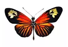 黑脉金斑蝶:翅阔8.6-12.4厘米。雄蝶较雌蝶为大。成年蝶颜色鲜艳,翅膀上有显眼的橙色及黑色斑纹,周围是宽阔的黑色边框,布有许多白色斑点。这种引人注目的着色是对捕食者的视觉警告,表示这个物种有毒;…全部>>