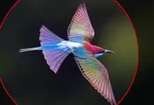 栗喉蜂虎是蜂虎科蜂虎属的鸟类。有热带鸟类羽毛艳丽的特征:喉部是栗红色的,黑色的过眼纹,翅膀和背部是绿色的,尾翼是蓝色的,飞行时翅膀下面的羽毛是橙黄色的,在阳光的照射下,它们全身闪烁着金属般的艳丽光泽,…全部>>