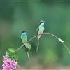 蓝颊蜂虎:是蜂虎科、蜂虎属的鸟类,共有2个亚种。体长27-33厘米,翼展46-49厘米,体重38-50克。嘴形细长而下弯,先端尖,…全部>>