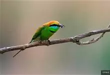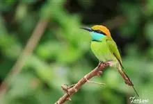 绿喉蜂虎是佛法僧目、蜂虎科的小型鸟类,共有9个亚种。身长22-25厘米,翼展29-30厘米,体重15-20克。喉绿色,额部、头顶至上背为锈红色,其余上体均为亮绿色。中央尾羽延长且端段狭细,…全部>>