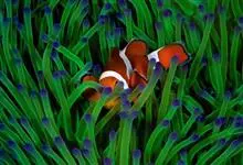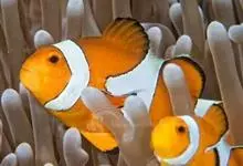 小丑鱼是鲈形目雀鲷科小丑鱼属鱼类的统称。体长仅5—6厘米。身体色彩艳丽,多为红色、橘红色;除透明的胸鳍与软背鳍鳍条外部,其余鳍均为黑色。体形怪异,体色多变,通常体侧有白色条纹。…全部>>