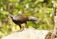 红腹角雉属于鸡形目雉科,雄鸟体羽及两翅主要为深栗红色,满布具黑缘的灰色眼状斑,下体灰斑大而色浅。雌鸟上体灰褐色,下体淡黄色,杂以黑、棕、白斑。全部>>