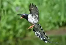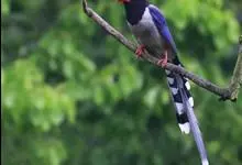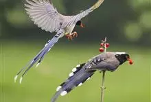 红嘴蓝鹊,别名山鹊、长尾鹊,是鸦科蓝鹊属的一种观赏性较强的大型鸣禽。该物种为体长54~65cm,头、颈、喉和胸黑色,头顶至后颈有一块白色至淡蓝白色或紫灰色块斑,其余上体紫蓝灰色或淡蓝灰褐色。尾长呈凸状,…全部>>