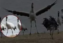 黑颈鹤:是鹤科、鹤属的大型涉禽,体长110-120厘米,体重4-6千克。颈、脚甚长,通体羽毛灰白色,头部、前颈及飞羽黑色,眼先和头顶前方裸露的皮肤呈暗红色,尾羽褐黑色。头顶,三级飞羽的羽片分散,…全部>>