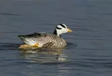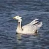 斑头雁是雁形目鸭科雁属鸟类,又称白头雁、黑纹头雁。通体大都灰褐色,头和颈侧白色,头顶有两道黑色带斑;虹膜暗棕色,嘴橙黄色,嘴甲黑色,脚和趾橙黄色;背部淡灰褐色,羽端缀有棕色,形成鳞状斑;颏、喉污白色,…全部>>