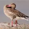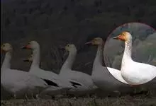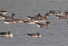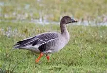灰雁:体长70-90厘米,翼展147-182厘米,体重2.5-4千克,寿命17年。体大而肥胖。嘴、脚肉色,上体灰褐色,下体污白色,飞行时双翼拍打用力,振翅频率高。脖子较长。腿位于身体的中心支点,…全部>>