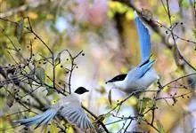 喜鹊:是鸦科、鹊属的一种鸟类。共有11个亚种。体长40-50厘米,雌雄羽色相似,头、颈、背至尾均为黑色,并自前往后分别呈现紫色、绿蓝色、绿色等光泽,双翅黑色而在翼肩有一大形白斑,尾远较翅长,呈楔形,…全部>>
