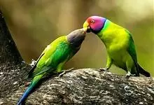 紫红头鹦鹉是鹦形目鹦鹉科的鸟类。鸟体为绿色,头部中间为红色,下颏下方延伸到脸颊下方,环绕整个颈部有一条黑色的环状羽毛,并连接一条蓝绿色的条状羽毛。…全部>>