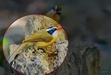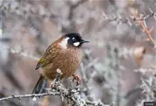 黑顶噪鹛:中型鸟类,体长24-26厘米。前额、脸、颏、喉黑色,头顶黑褐沾棕或深棕橄榄褐色,背栗褐或棕褐色,颧斑白色或棕红色,眼后缘和颈侧亦具白斑,飞羽金黄橄榄色而具蓝灰色尖端。下体淡棕褐色。…全部>>