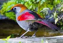 赤尾噪鹛中型鸟类,体长24~28厘米。头顶至后颈红棕色,两翅和尾鲜红色,眼先、眉纹、颊、颏和喉黑色,眼后有一灰色块斑。其余上下体羽大都暗灰或橄榄灰色。特征极明显,特别是通过鲜红色的头顶、翅和尾。…全部>>