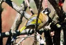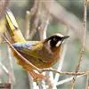 黄喉噪鹛体型略小,顶冠蓝灰色,特征为具黑色的眼罩和鲜黄色的喉。上体褐色,尾端黑色而具白色边缘,腹部及尾下覆羽皮黄色而渐变成白色。黄喉噪鹛隐匿于亚热带常绿林和浓密灌丛,于地面杂物中取食,喜食昆虫,…全部>>