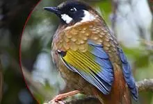 黑顶噪鹛:中型鸟类,体长24-26厘米。前额、脸、颏、喉黑色,头顶黑褐沾棕或深棕橄榄褐色,背栗褐或棕褐色,颧斑白色或棕红色,眼后缘和颈侧亦具白斑,飞羽金黄橄榄色而具蓝灰色尖端。下体淡棕褐色。…全部>>