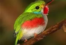 火尾绿鹛是莺科、绿鹛属小型鸟类,体长11-14厘米。上体绿色,头顶至枕具黑色鳞状斑,眼先和眼后黑色,眉纹黄绿色。两翅黑色具黄色和红色翅斑及白色端斑,极为醒目。中央一对尾羽绿色,外侧尾羽鲜红色。…全部>>