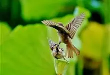 家麻雀:共有13个亚种。是小型鸟类,体长14-16厘米。背栗红色具黑色纵纹,两侧具皮黄色纵纹;颏、喉和上胸黑色,脸颊白色,其余下体白色,翅上具白色带斑。雄鸟与树麻雀的区别在顶冠及尾上覆羽灰色,耳无黑…全部>>