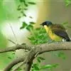 黄喉噪鹛体型略小,顶冠蓝灰色,特征为具黑色的眼罩和鲜黄色的喉。上体褐色,尾端黑色而具白色边缘,腹部及尾下覆羽皮黄色而渐变成白色。黄喉噪鹛隐匿于亚热带常绿林和浓密灌丛,于地面杂物中取食,喜食昆虫,…全部>>