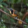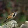 黑领噪鹛是雀形目画眉科噪鹛属鸟类,又名领笑鸫。头顶和上体褐色;眼先和眉纹白色;脸部具黑白相间的纵纹;颈侧至胸前具显著的黑色宽带,形成一半领环,其后方的颈背向下至两胁皆为棕黄色,其余下体白色;尾褐色,…全部>>