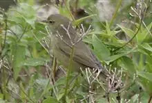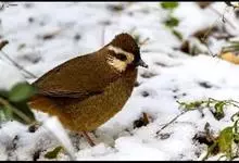 白颊噪鹛是雀形目噪鹛科噪鹛属鸟类,又称土画眉、小画眉、小噪鹃。成鸟额至头顶栗褐色,长眉纹、眼先和颊纹棕白色,眼后至耳羽深褐色,…全部>>
