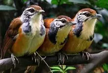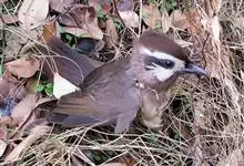 白颊噪鹛是雀形目噪鹛科噪鹛属鸟类,又称土画眉、小画眉、小噪鹃。成鸟额至头顶栗褐色,长眉纹、眼先和颊纹棕白色,眼后至耳羽深褐色,…全部>>