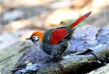 赤尾噪鹛中型鸟类,体长24~28厘米。头顶至后颈红棕色,两翅和尾鲜红色,眼先、眉纹、颊、颏和喉黑色,眼后有一灰色块斑。其余上下体羽大都暗灰或橄榄灰色。特征极明显,特别是通过鲜红色的头顶、翅和尾。…全部>>