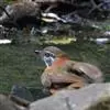 大噪鹛:中型鸟类,体长32-36厘米。额至头顶黑褐色,背栗褐色满杂以白色斑点,斑点前缘或四周还围有黑色。初级覆羽、大覆羽和初级飞羽具白色端斑。尾特长,均具黑色亚端斑和白色端斑。颏、喉棕褐色,…全部>>