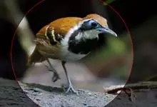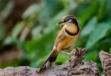 黑领噪鹛是雀形目画眉科噪鹛属鸟类,又名领笑鸫。头顶和上体褐色;眼先和眉纹白色;脸部具黑白相间的纵纹;颈侧至胸前具显著的黑色宽带,形成一半领环,其后方的颈背向下至两胁皆为棕黄色,其余下体白色;尾褐色,…全部>>